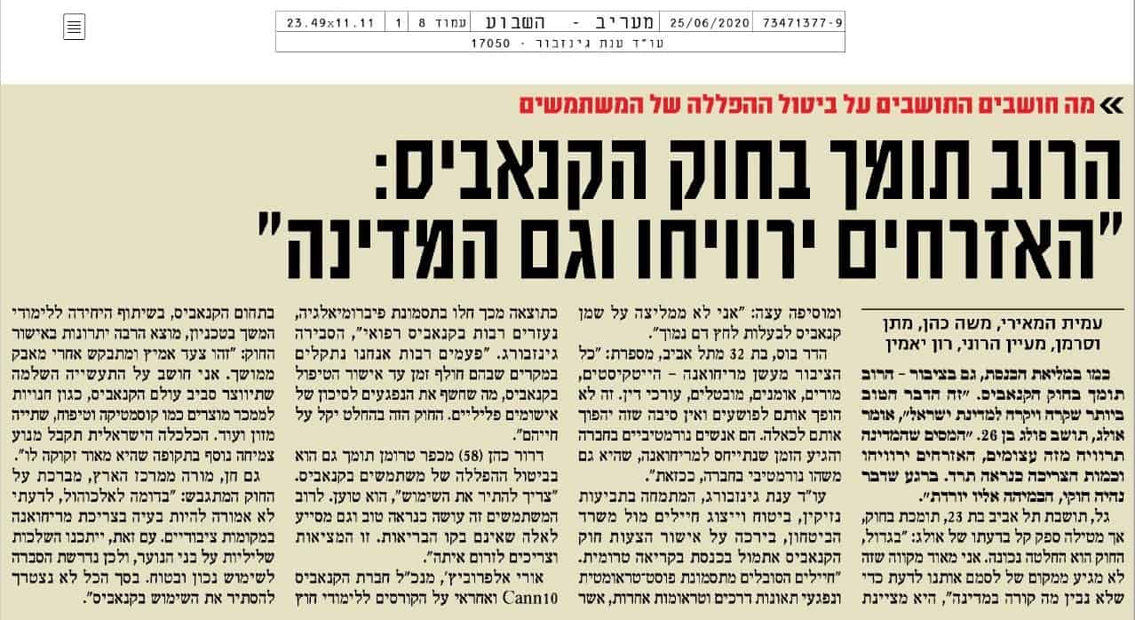 עו"ד ענת גינזבורג, המתמחה בתביעות נזיקין, ביטוח וייצוג חיילים מול משרד הביטחון, בירכה על אישור הצעות חוק הקנאביס אתמול בכנסת בקריאה טרומית.