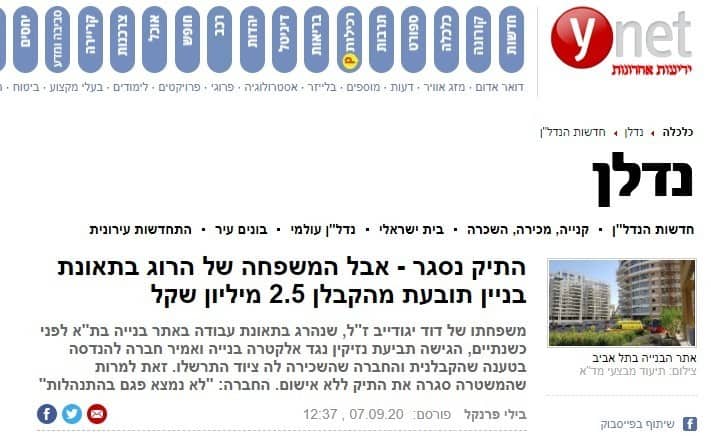 פורסם בYNET מדור נדלן, 07/09/2020, ע"י בילי פרנקל